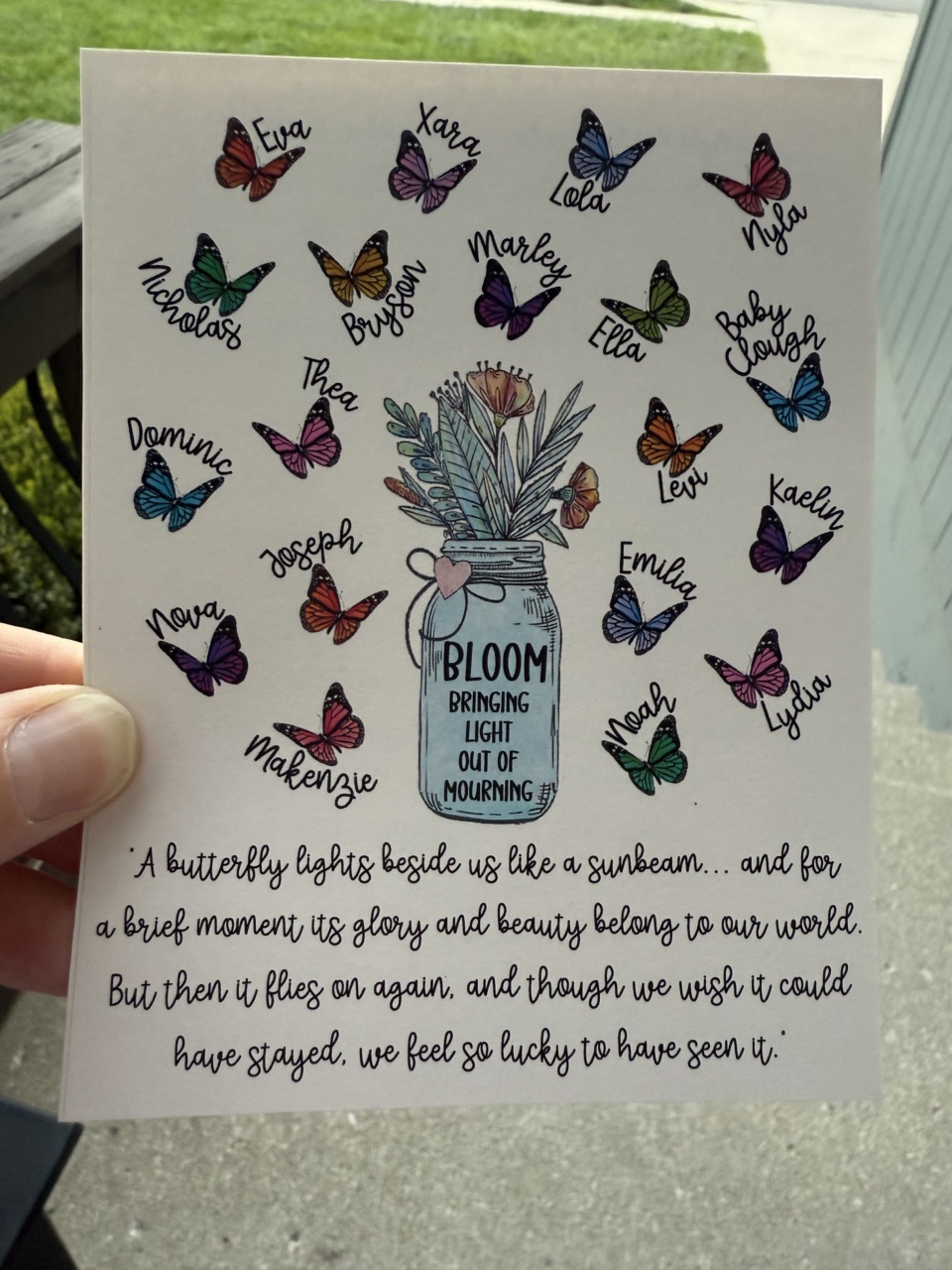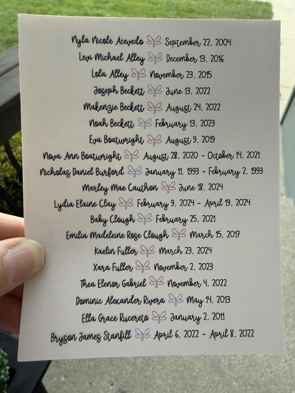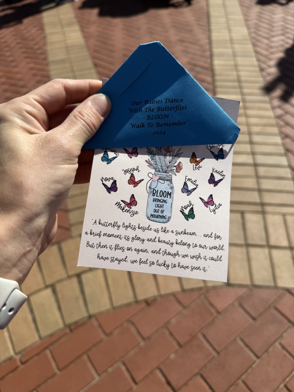 2024 Walk To Remember Posted on October 7, 2024October 7, 2024 by Charmel Clough by Charmel Clough BLOOM – Walk To Remember 2024 – Our Babies Dance with the Butterflies Post navigationOctober Bonfire 2024Holiday Candlelight 2024Leave a Reply Cancel replyYou must be logged in to post a comment.